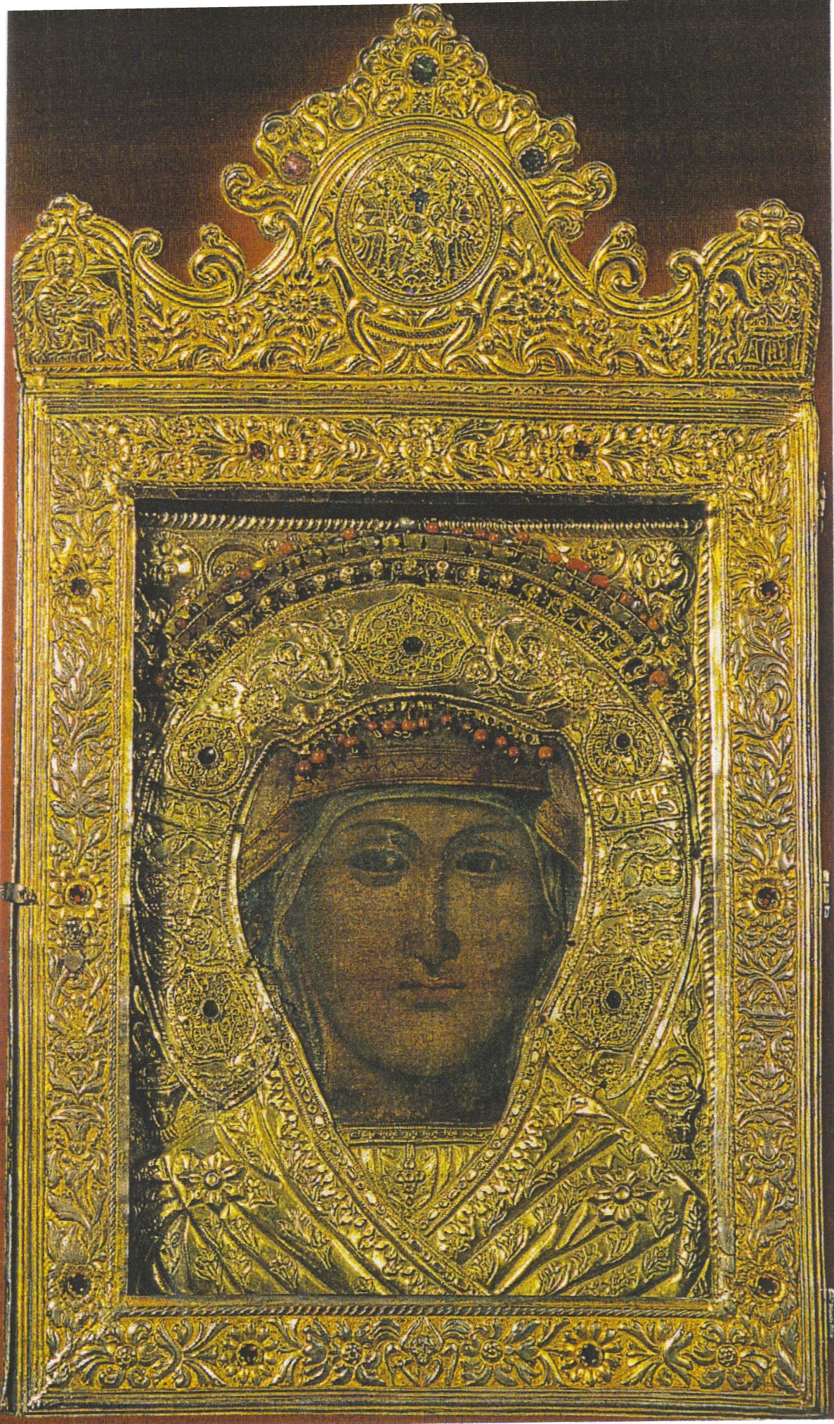 2. Η σεπτή και θαυματουργή εικόνα της πολιούχου της Σκιάθου Παναγίας Εικονίστριας ή Κουνίστρας. Φυλάσσεται σε ξυλόγλυπτο προσκυνητάρι στον Ιερό Μητροπολιτικό Ναό της Σκιάθου.