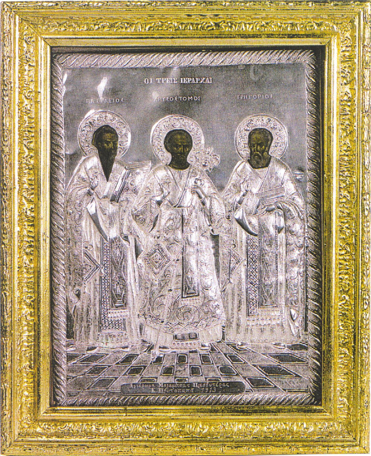 3. Φορητή εικόνα των Τριών Ιεραρχών στον ομώνυμο Ιερό Μητροπολιτικό Ναό της Σκιάθου.