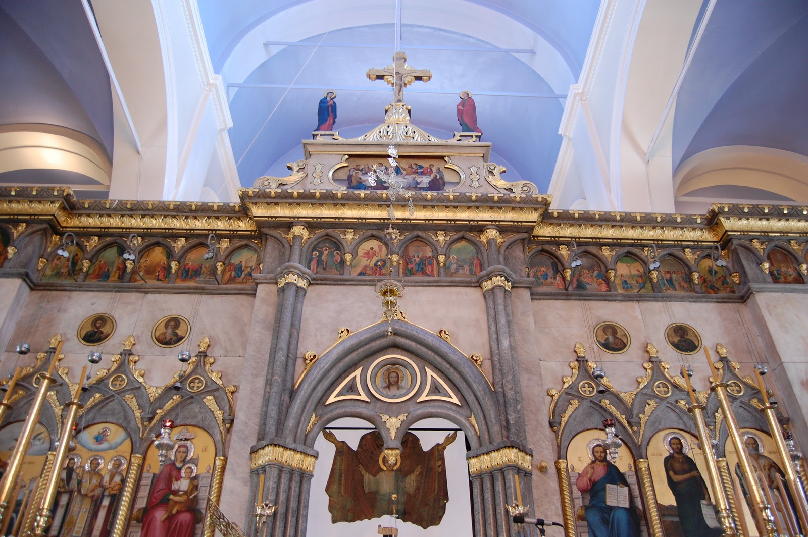 4. Το μαρμάρινο τέμπλο του ναού. Φιλοτεχνήθηκε το 1883 από τον Τήνιο μαρμαρογλύπτη Γεώργιο Καπαριά. (skiathosiconography.blogspot.com 30 Ιανουαρίου 2012)