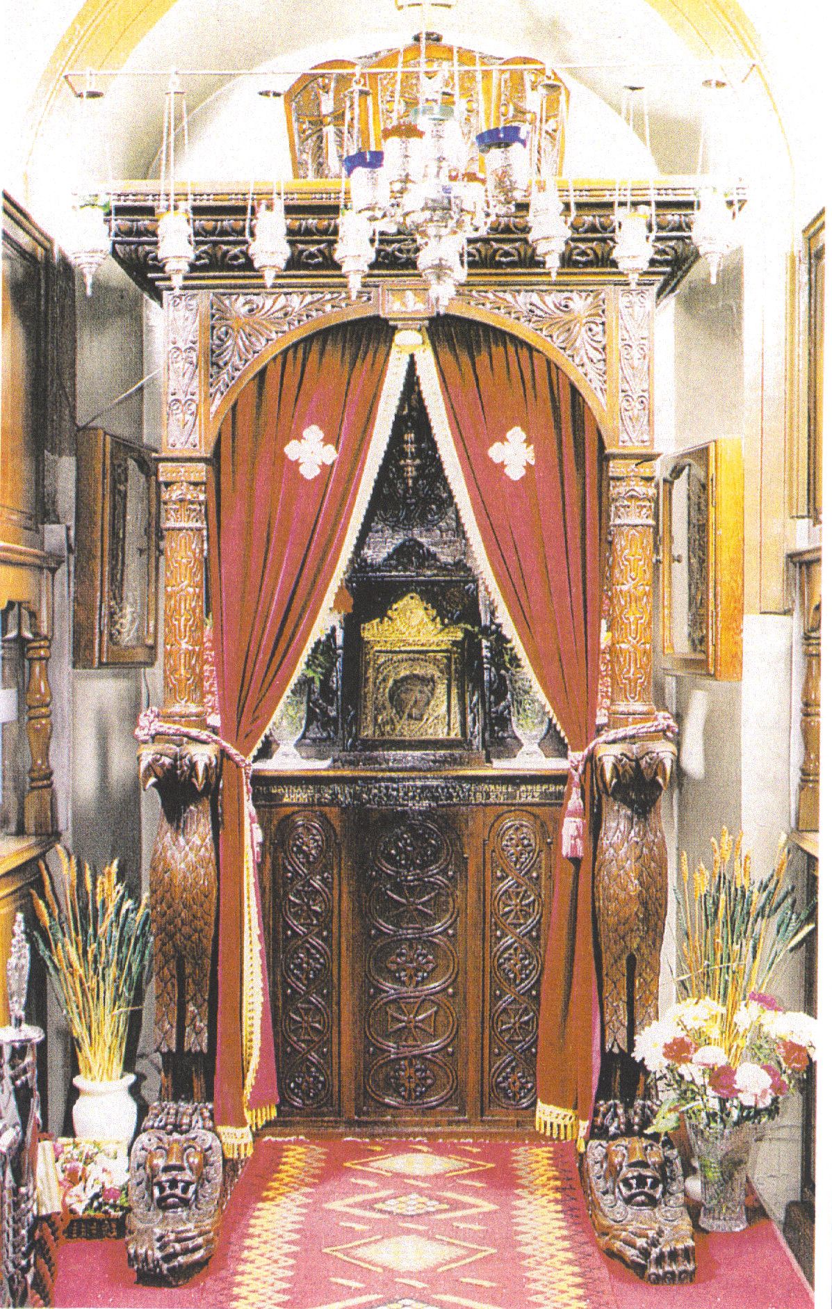 5. Το ξυλόγλυπτο προσκυνητάρι με τη θαυματουργή εικόνα της Παναγίας Εικονίστριας. Η ευρεθείσα τον 17ο αιώνα ιερά και θαυματουργή εικόνα αποτελεί το σέμνωμα των απανταχού της Γης Σκιαθιτών.