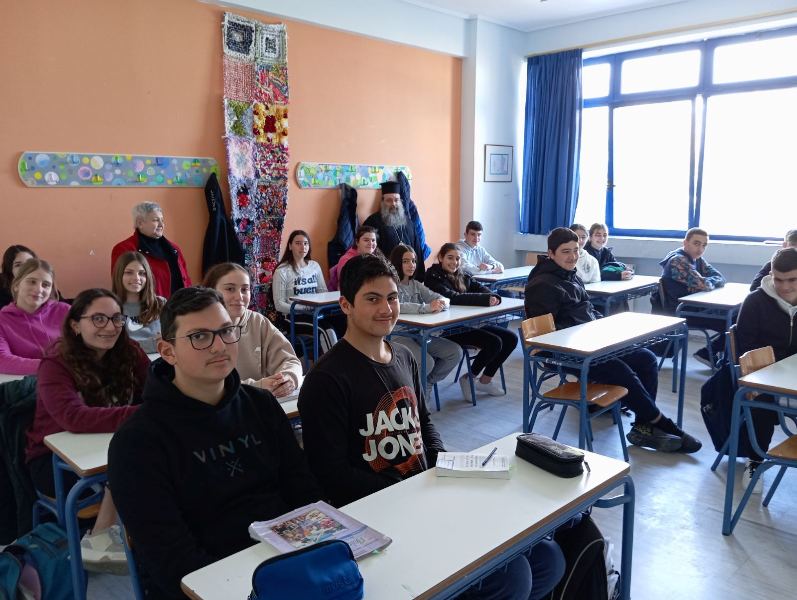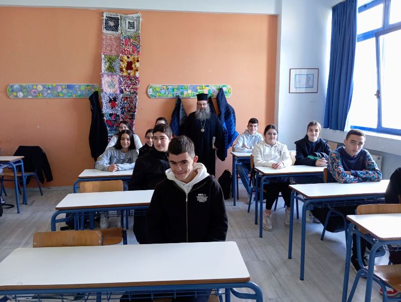 Συγκεκριμένα τούς μίλησε εἰσαγωγικά γιά τήν σημασία τῆς γλώσσας μας καί εἰδικώτερα παρέδωσε τήν ἑνότητα περί τοῦ Ἀορίστου Β’ μέ λεπτομερῆ ἀνάλυση τοῦ ἀντικειμένου, παραδείγματα, ἐξαιρέσεις κ.ἄ. Τό μάθημα ἔγινε σέ φιλικό καί διαλογικό κλίμα καί τό παρηκολούθησαν ἡ Προϊσταμένη Δευτεροβαθμίου Ἐκπαιδεύσεως Χίου Φιλόλογος κ. Εὐτυχία Βλυσίδου καί ἡ Φιλόλογος τῆς τάξεως κ. Μ. Παραδείση. Ἀποχαιρετώντας τά παιδιά ὁ Σεβασμιώτατος εὐχαρίστησε τόν Διευθυντή τοῦ Γυμνασίου κ. Τομάζο γιά τήν πρόσκληση καί ὑποσχέθηκε νά ἐπανέλθει.